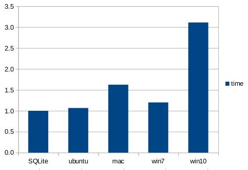 The writing test above is not completely fair, since SQLite is doing power-safe transactions whereas the direct-to-disk writing is not. To put the tests on a more equal footing, add either the --nosync option to the SQLite writes to disable calling fsync() or FlushFileBuffers() to force content to disk, or using the --fsync option for the direct-to-disk tests to force them to invoke fsync() or FlushFileBuffers() when updating disk files.