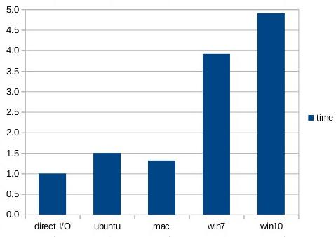 I/O performance varies widely depending on operating system and hardware. Make your own measurements before drawing conclusions.